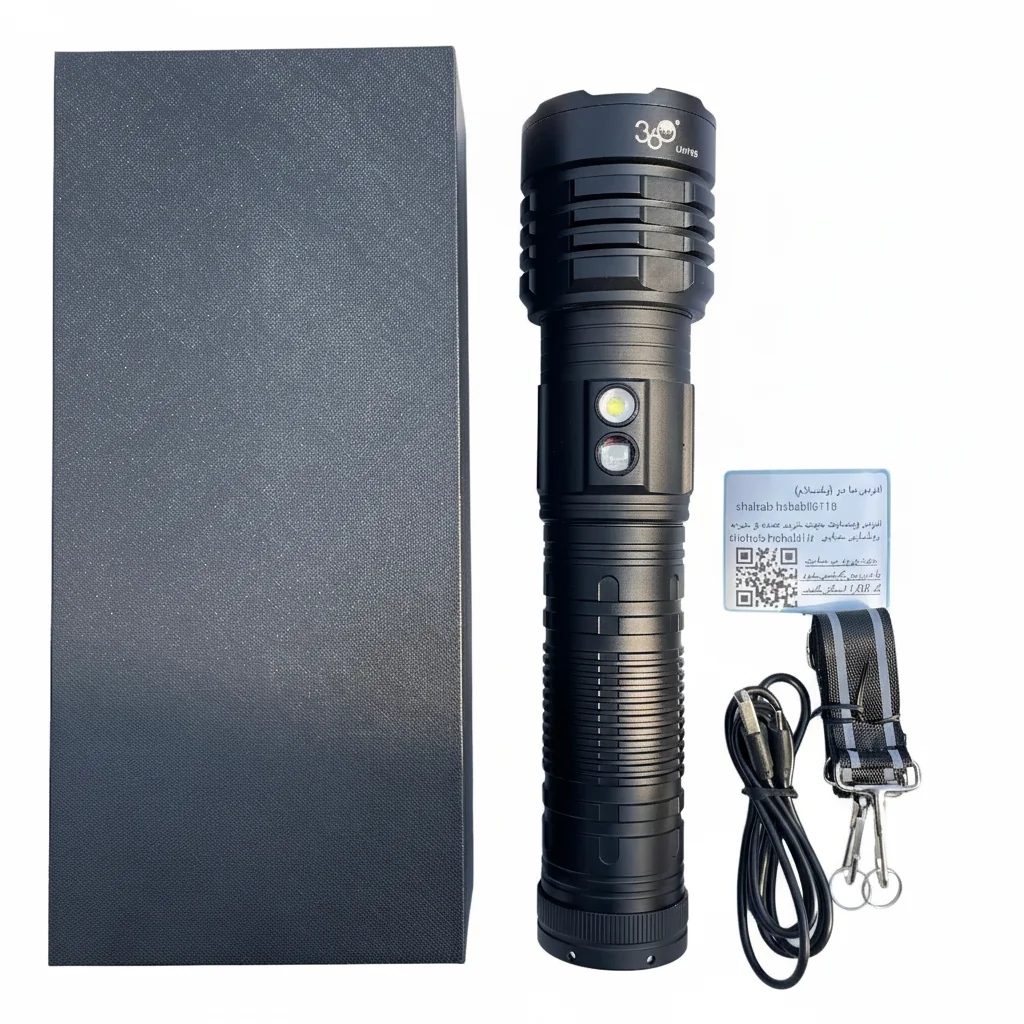 چراغقوه شارژی حرفهای USB مدل LH‑7106 | چیپ P300، ضدآب IPX6، زومدار برد فوقالعاده 3 کیلومتر، نور پرقدرت 3000 لومن