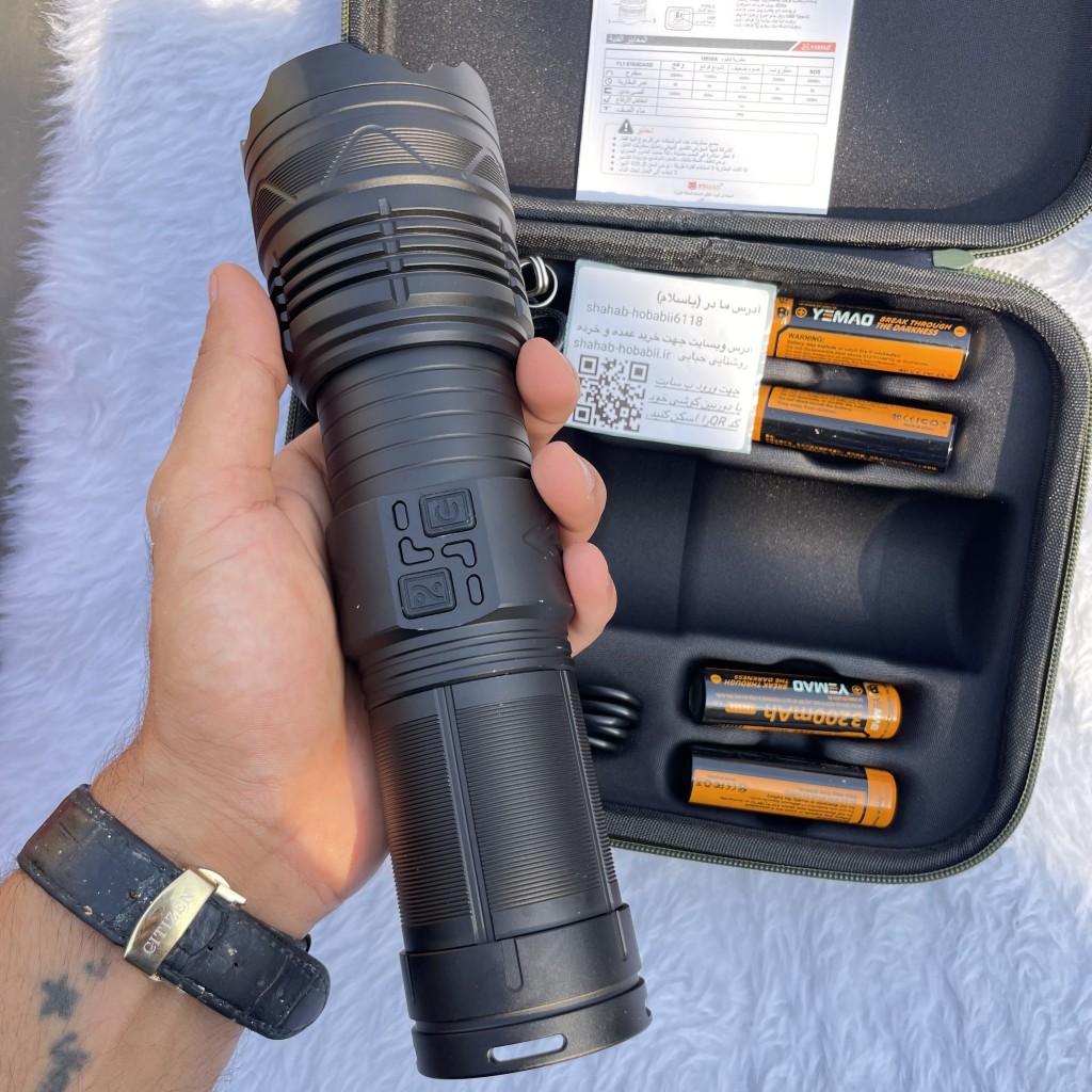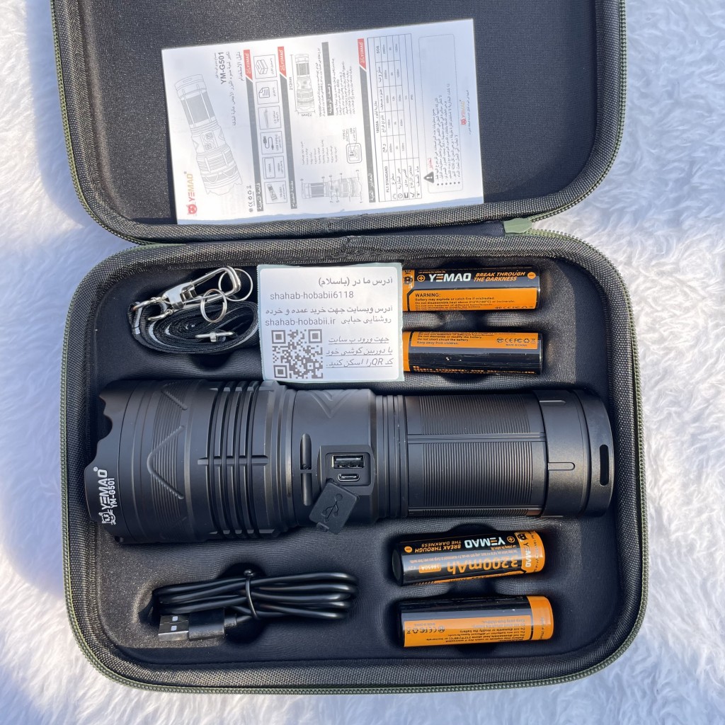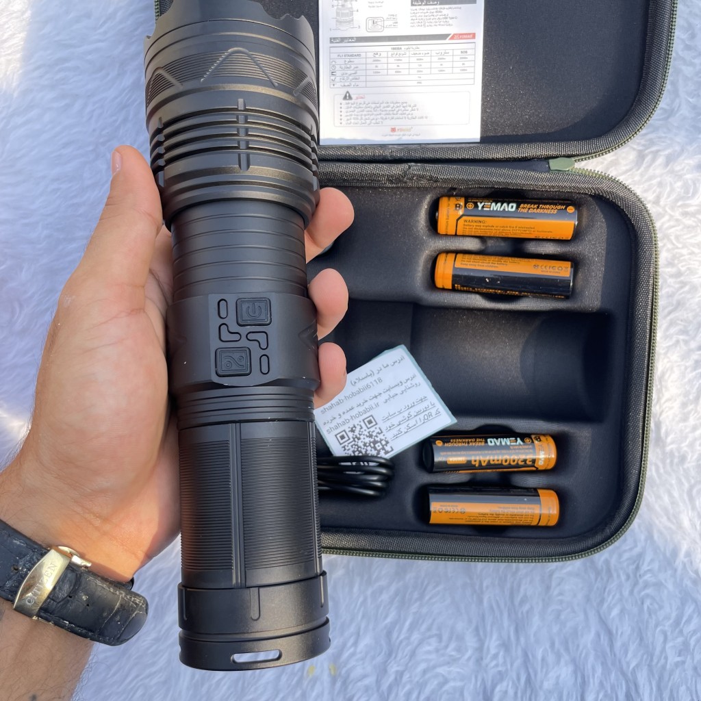نورافکن شارژی حرفهای YEMAO YM-Q501 | ضدآب، زومدار و برد فوقالعاده بلند