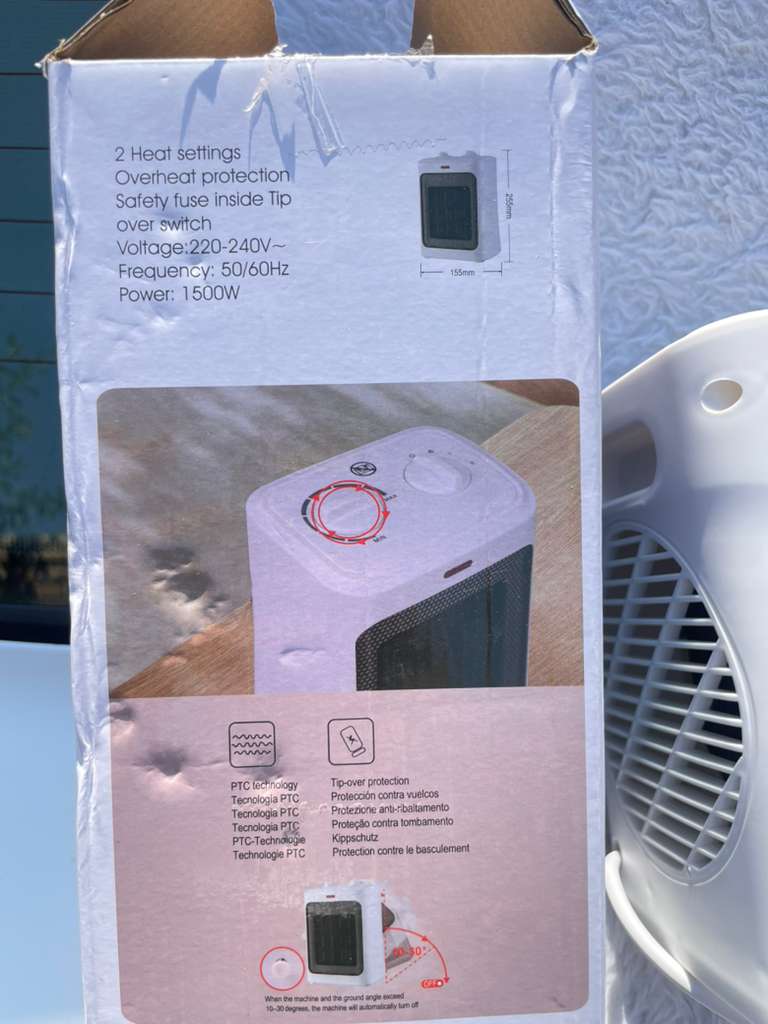 - توان گرمایی: 1500 وات (دو حالت 750 وات و 1500 وات)