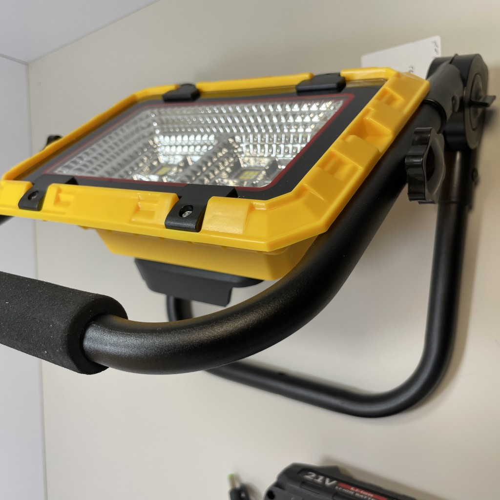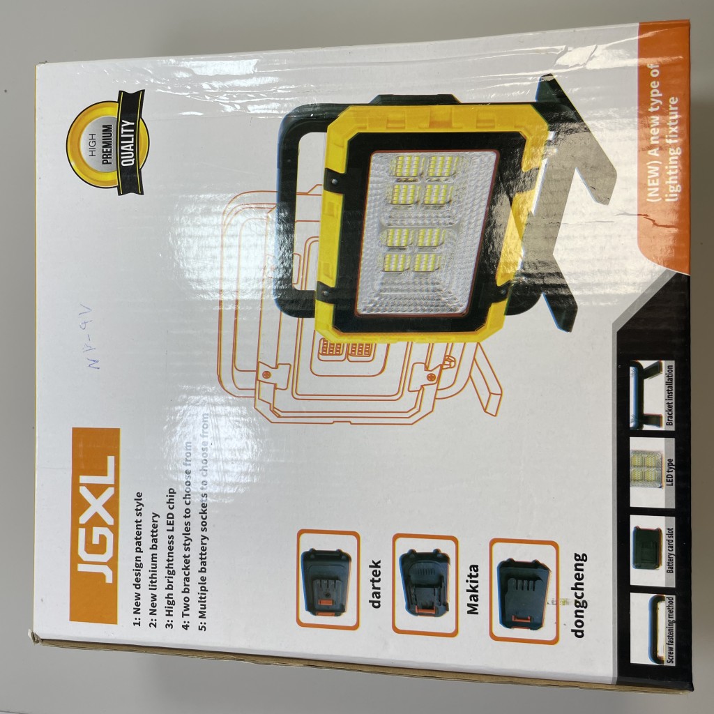 پرژکتور شارژی ۵۰۰ وات JGXL | باتری دریلی ۲۱ ولت | پایه فلزی تاشو و نور فوققوی LED