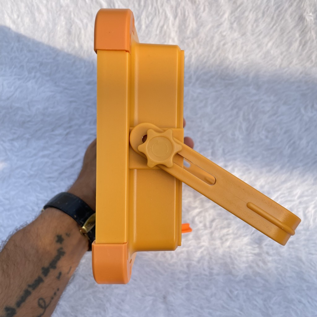 بدنه از پلاستیک فشرده ABS مقاوم در برابر ضربه، رطوبت و تابش تابش آفتاب ساخته شده است. کلاس محافظت (IP65) مقاومت کامل در برابر باران و شرایط مرطوب به آن میدهد، بنابراین بهراحتی در فضای باز، باغ، حیاط، سفر یا کمپ قابل استفاده است.