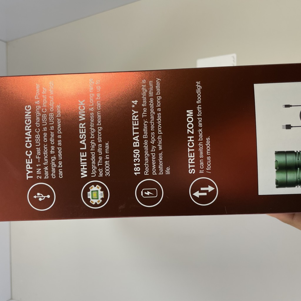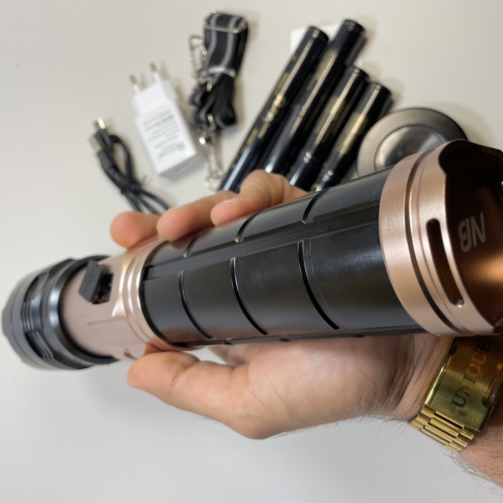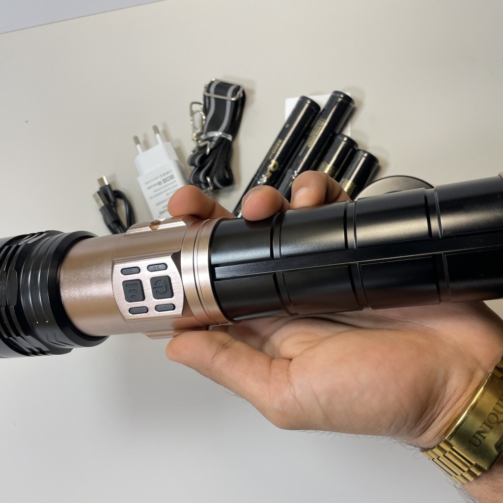 وجود LED لیزری پرقدرت، باتریهای چهارگانه، شارژ Type‑C، قابلیت پاوربانک و زوم کشویی باعث میشود این مدل یکی از بهترین گزینهها برای سفر، کمپ، شکار، کارگاه، خودرو و استفادههای اضطراری باشد.