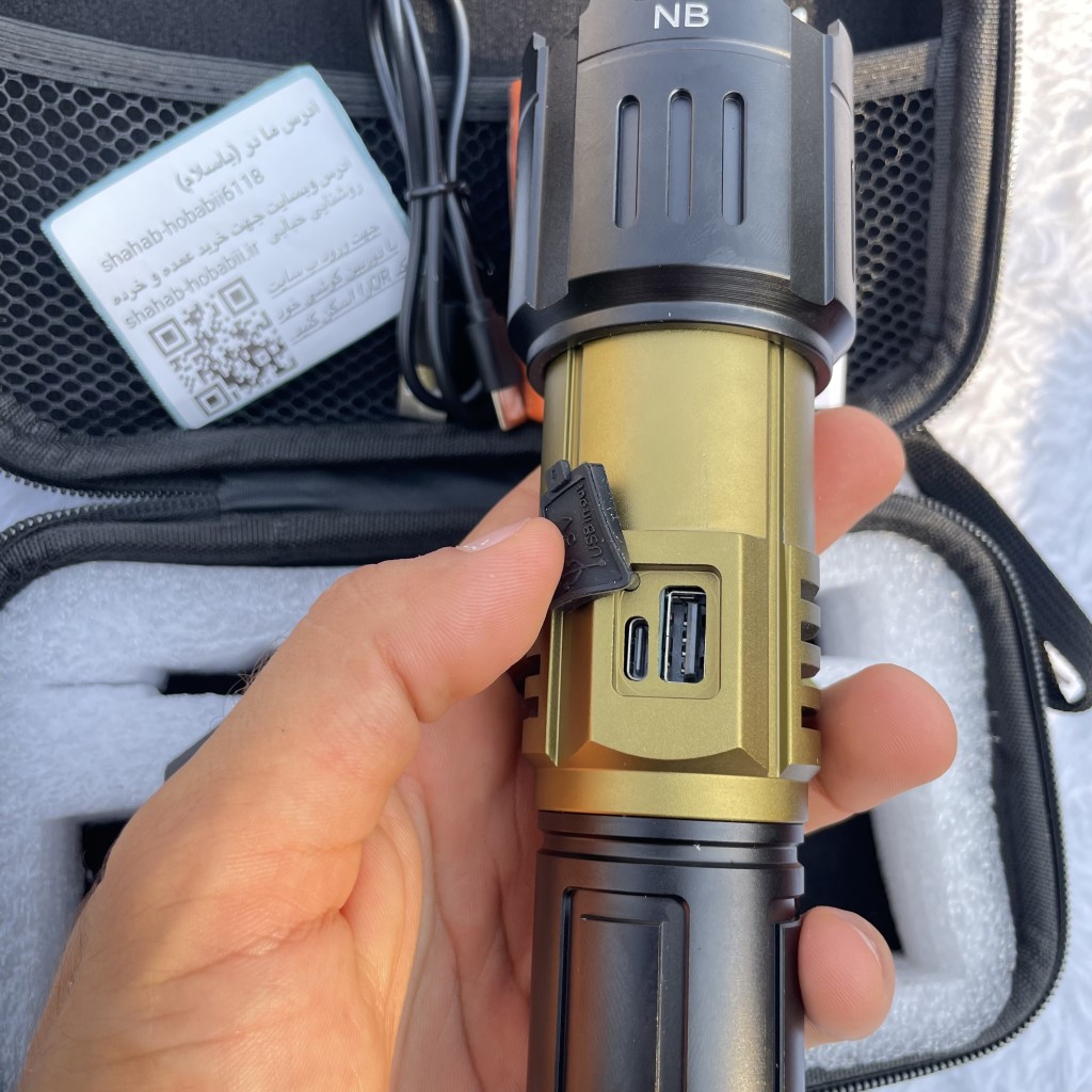 چراغقوه از طریق درگاه Type‑C شارژ میشود؛ سریع، ایمن و سازگار با شارژرهای جدید. برای راحتی بیشتر، کابل تایپسی و آداپتور شارژ نیز داخل جعبه قرار داده شده است.