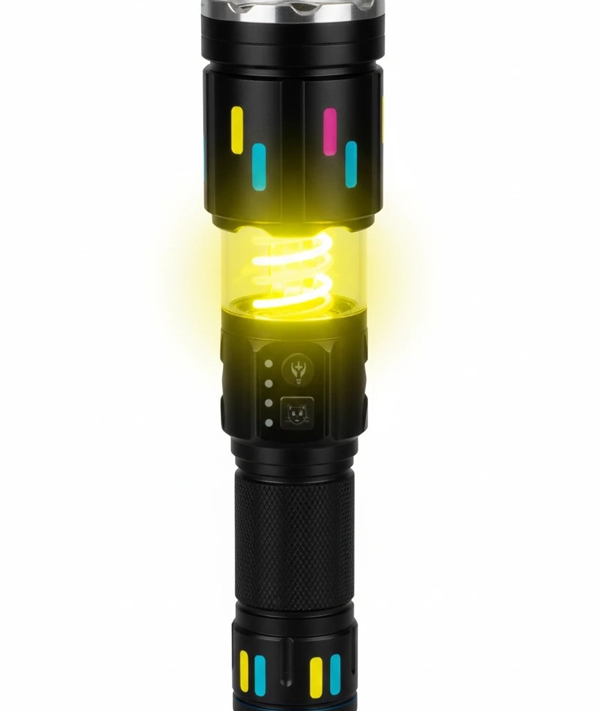 چراغ قوه شارژی YEMAO مدل YM‑G560Y یکی از جدیدترین و خاصترین مدلهای حرفهای بازار محسوب میشود که طراحی منحصربهفرد، قدرت نور بسیار بالا و امکانات مدرن را در یک بدنهی جمعوجور ارائه میدهد. این مدل ترکیبی از چراغ قوهی نوری با برد بلند و نور تزئینی داخلی زرد رنگ است که جلوهای مدرن و futuristic به آن داده است.